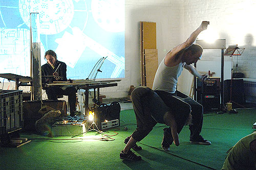 We are here, on a meadow, lighted by distant street lights, on the location of a two-year association of two people, sometimes three, and two animals, sometimes three, from winter of 2003 until winter of 2005, from 5.15, half past 5, daily, regardless of weather, illness is prohibited. Since 2005, there has been one, accompanied by a being which does not speak, still frantically singing and dancing, circling the meadow, trying to outrun the Sun, and turning the meadow into the Walden lake, one-hour walks on the meadow to the life in the forest.